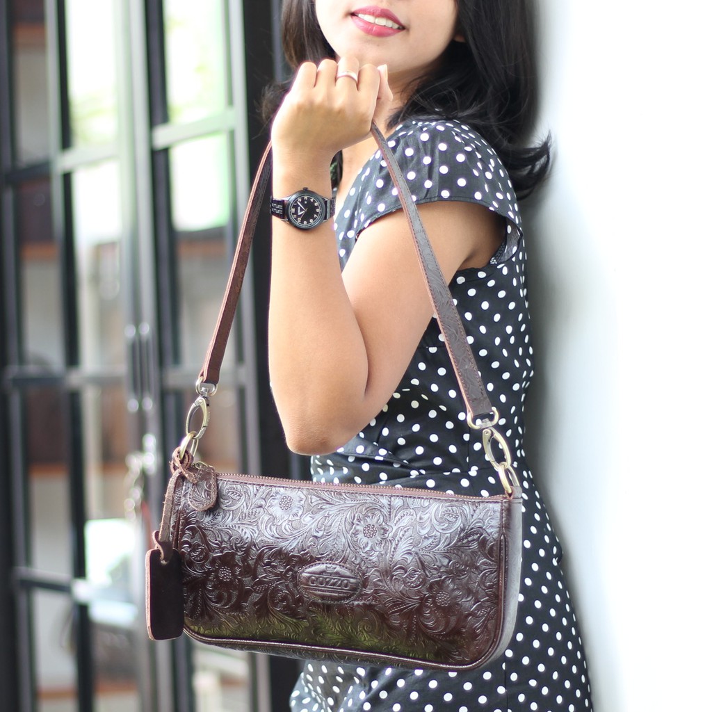 GOZZO LEATHER / TAS TANGAN DAN CLUTCH WANITA KULIT ASLI EMBOS BATIK MODEL NEBULA / FREE GRAVIR NAMA DI TAS