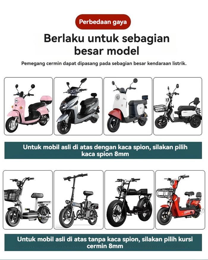 A Blueberry Kaca Spion Bulat Pendek Sepeda Listrik Universal/ Rear View Mirror E-Bike - Putih