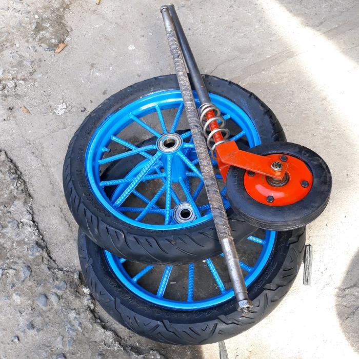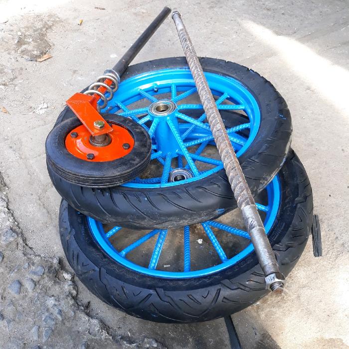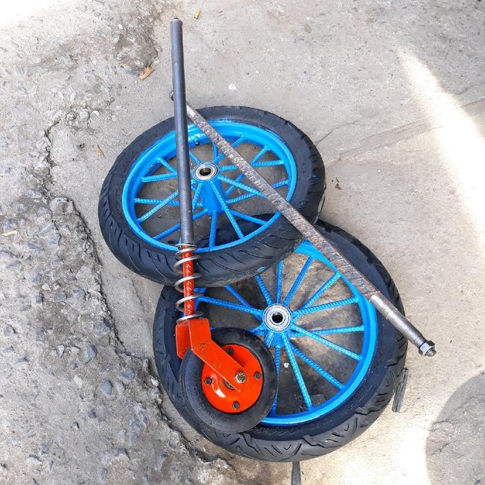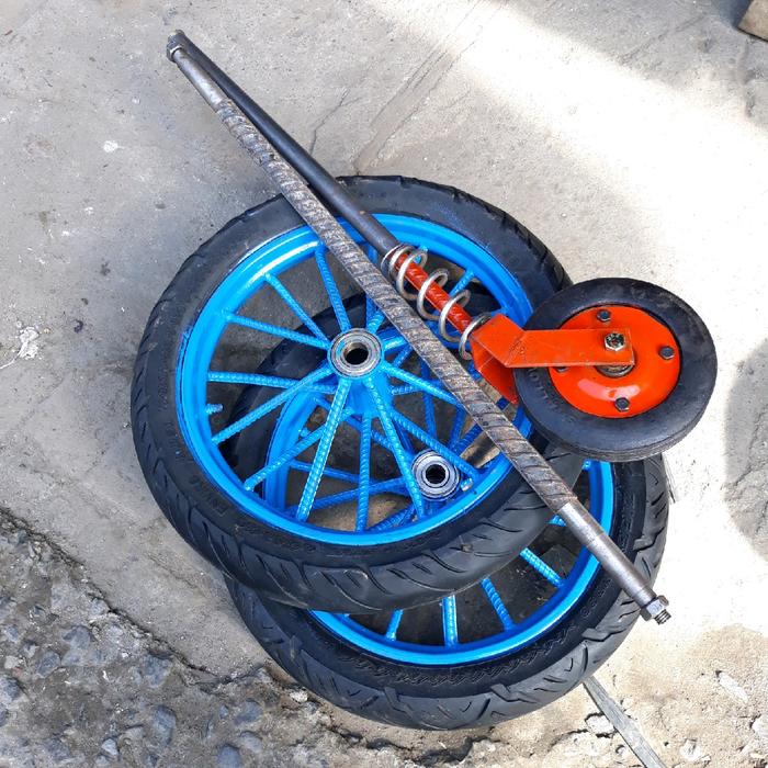 Roda Gerobak Ring 14 Inch Dan Roda Gletrek 1Set Komplit - Lebar Gerobak 40Cm Panjang As 65Cm
