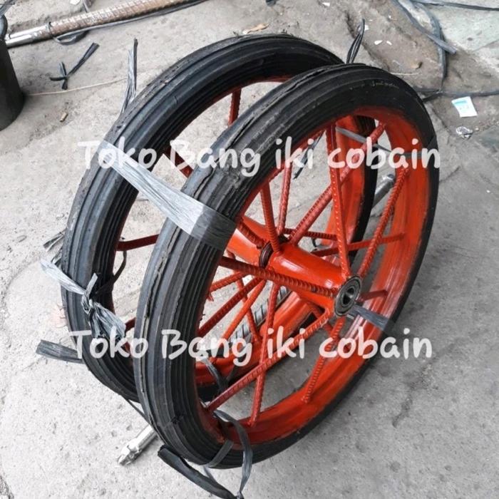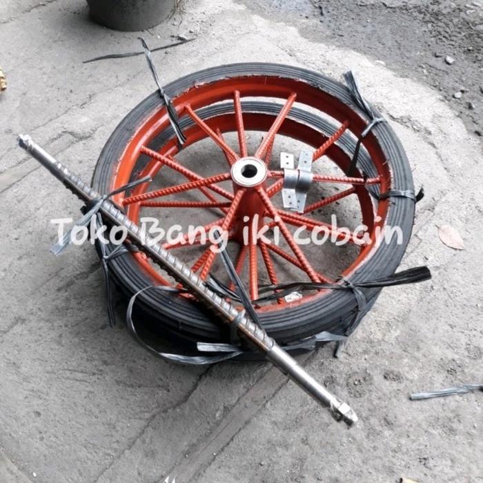 Roda Gerobak Ring 17 Inch Ban Mati Roda Gerobak Dorong 1Set - Lebar Gerobak 40Cm Panjang As 65Cm