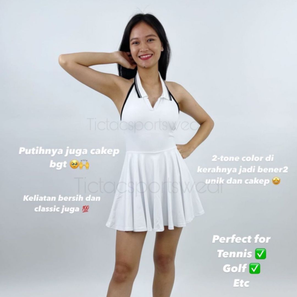 NATASHA TENNIS DRESS HALTER NECK WITH SHORT / SETELAN DRESS OLAHRAGA WANITA YOGA GOLF