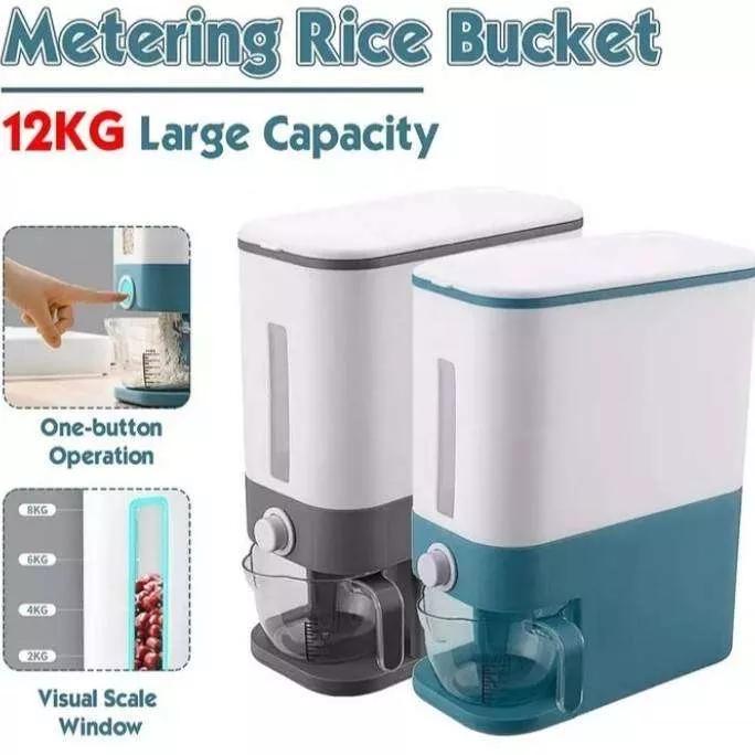 Dispenser Beras Otomatis 12Kg - Abu, Biru, Hijau, Merah, Penyimpanan, Pink Anti Hama & Lembab Dengan Cangkir Ukur Dan Bu