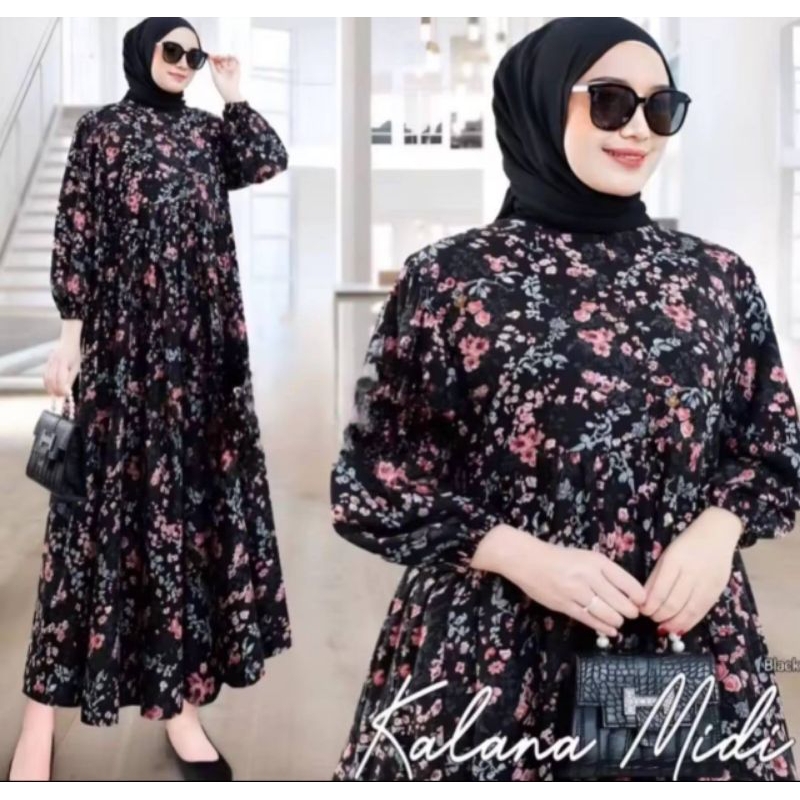 MIDI DRESS WANITA RAYON/Bahan Rayon Premium Terlaris Ld 110 dan 120 Pb 125 Katun Flowy Dress Busui Friendly NEW JUMBO