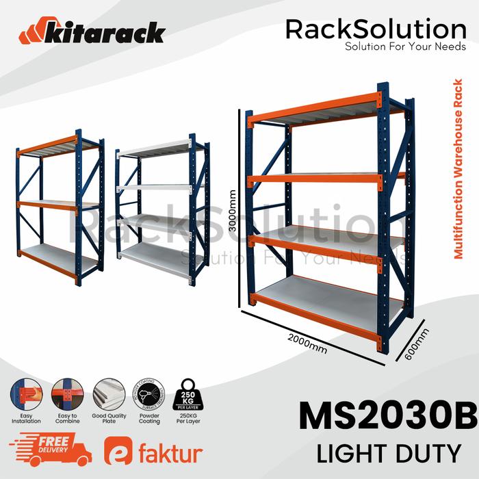 Warehouse Rack 3 Meter 4 Layer - Kitarack Ms2030 Rak Gudang Light Duty - Putih, 3 Layer