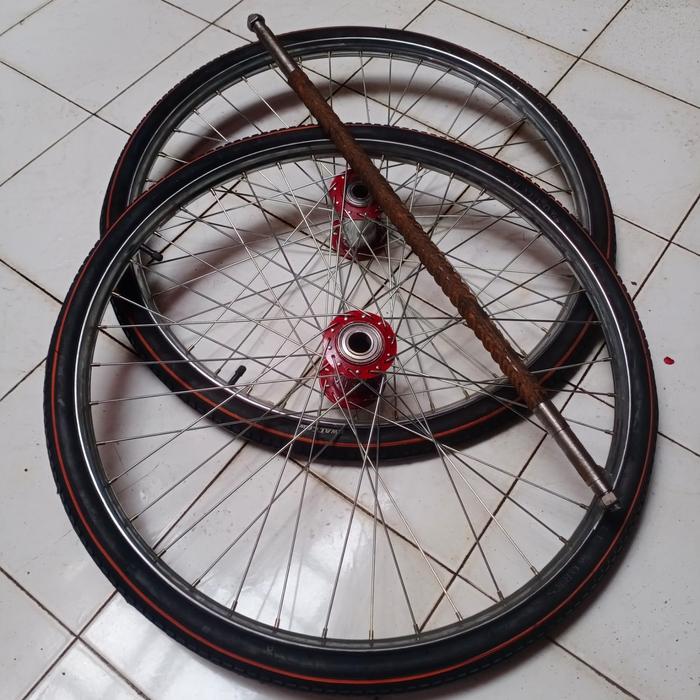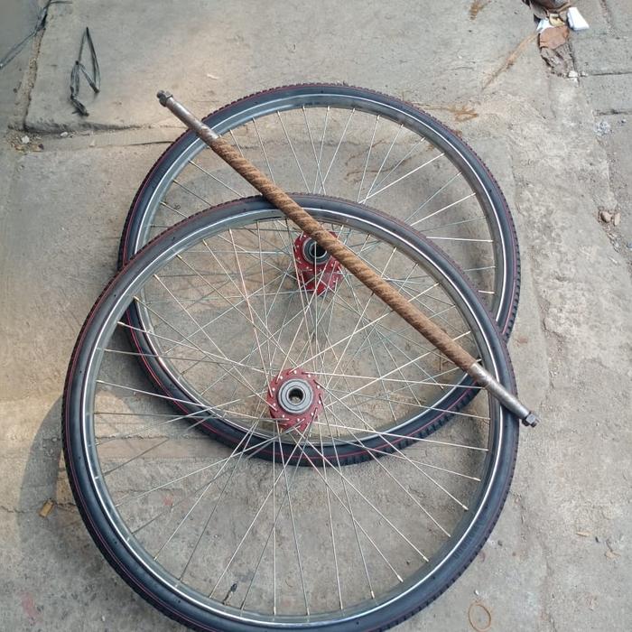 Roda Gerobak Becak Ring 28 Satu Pasang Ban Baru Dan Besi As