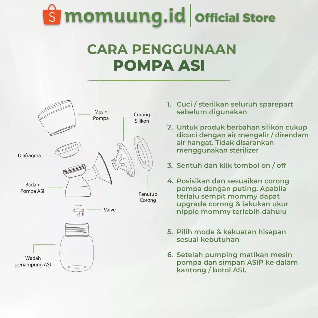 POMPA ASI MOM UUNG MOMUUNG ELECTRIC BREAST PUMP SINGLE PUMP MURAH LEMBUT SILENT MOMUUNG.ID