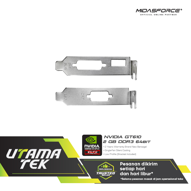 VGA NVIDIA Midasforce GT610 DDR3 64bit 2GB LP 2 Tahun