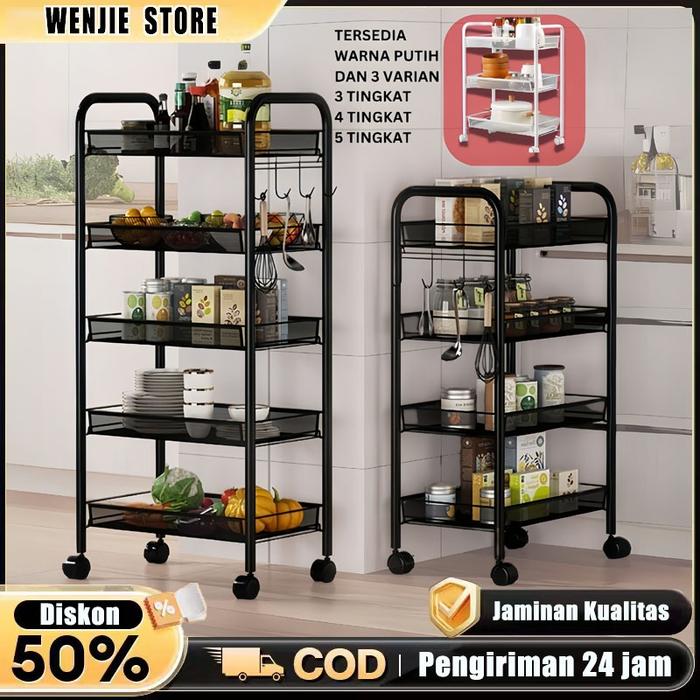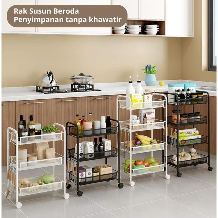 Rak Troli 3 /4 /5 Susun Rak Lantai Beroda Rak Penyimpanan Serbaguna Rak Salon Rak Dorong Rak R Tamu Dengan Roda - 3