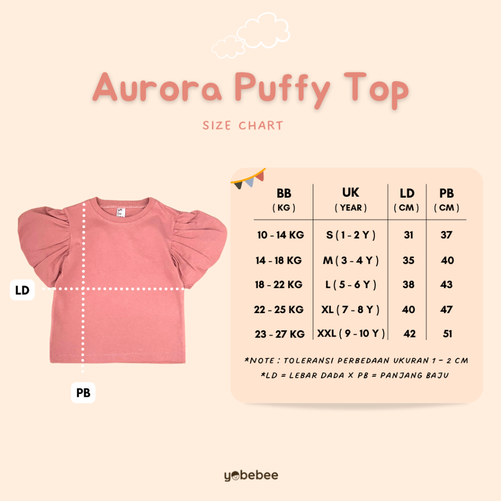 YOBEBEE AURORA PUFFY T0P ATASAN KAOS ANAK PEREMPUAN USIA 2 - 9 TAHUN TSHIRT POLOS MODEL TANGAN BALON