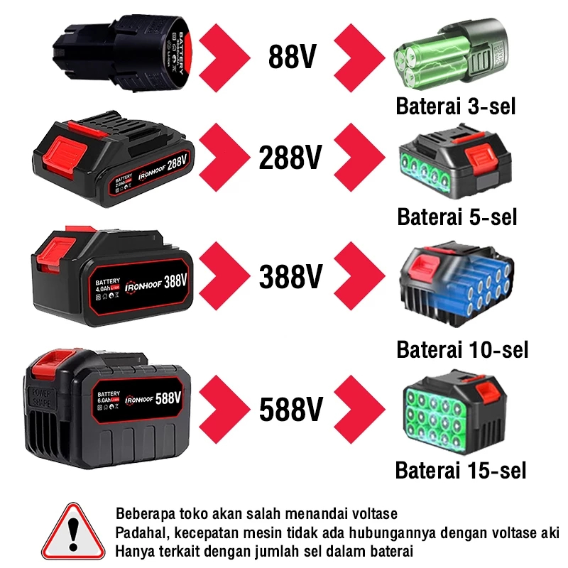 IRONHOOF Mesin potong rumput 588V Mesin pemotong rumput Pemangkas Rumput dengan Baterai Li-ion