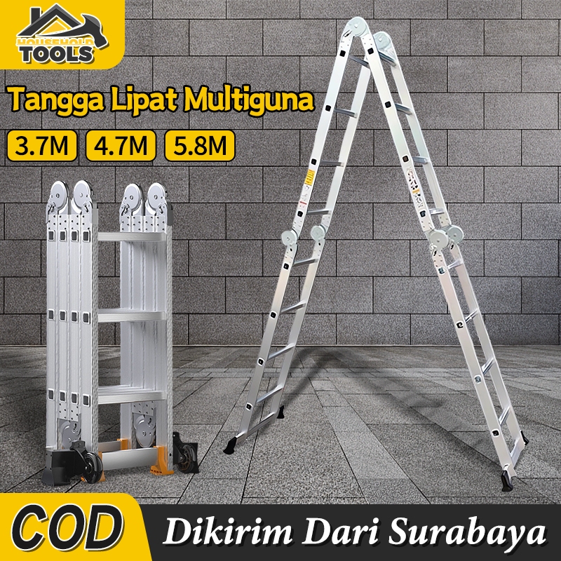 3.7m 4.7m 5.8m Lipat Aluminium Tangga Rumah Tangga Multifungsi Paduan Aluminium Dekorasi Konstruksi Tangga