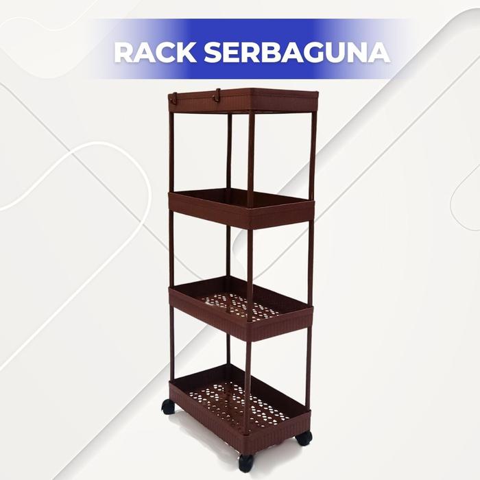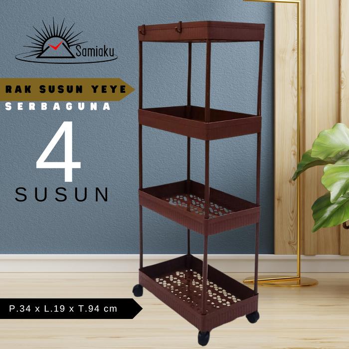 Samiaku Rak Susun Persegi Dapur Plastik 4 Susun | Rak Yeye Serbaguna Dengan Roda Putih Hitam Coklat - Hitam, Deng