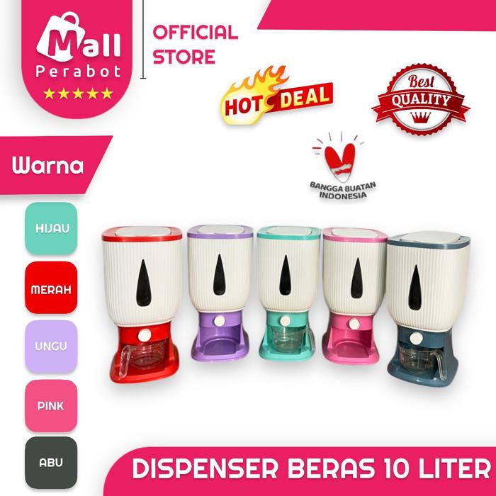 Mall Perabot | Dispenser Beras 10 Liter New Colours Rice Dispenser Tempat Wadah Penyimpanan Beras Otomatis Rice Box Deng