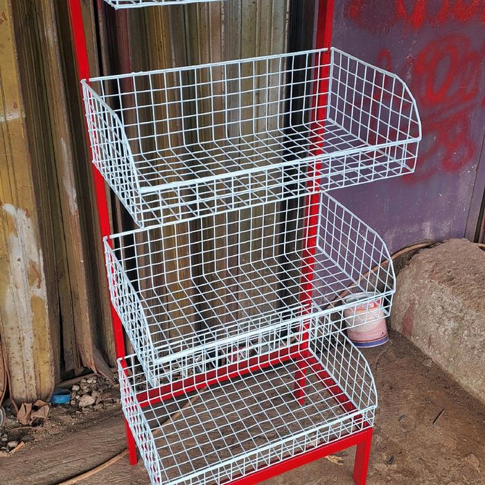 Rak Chiki & Rack Snack Kecil Besi 4 Susun Praktis Ringan Bahan Tebal Kuat Model Pasang Cantol Ukuran 45X30X110Cm