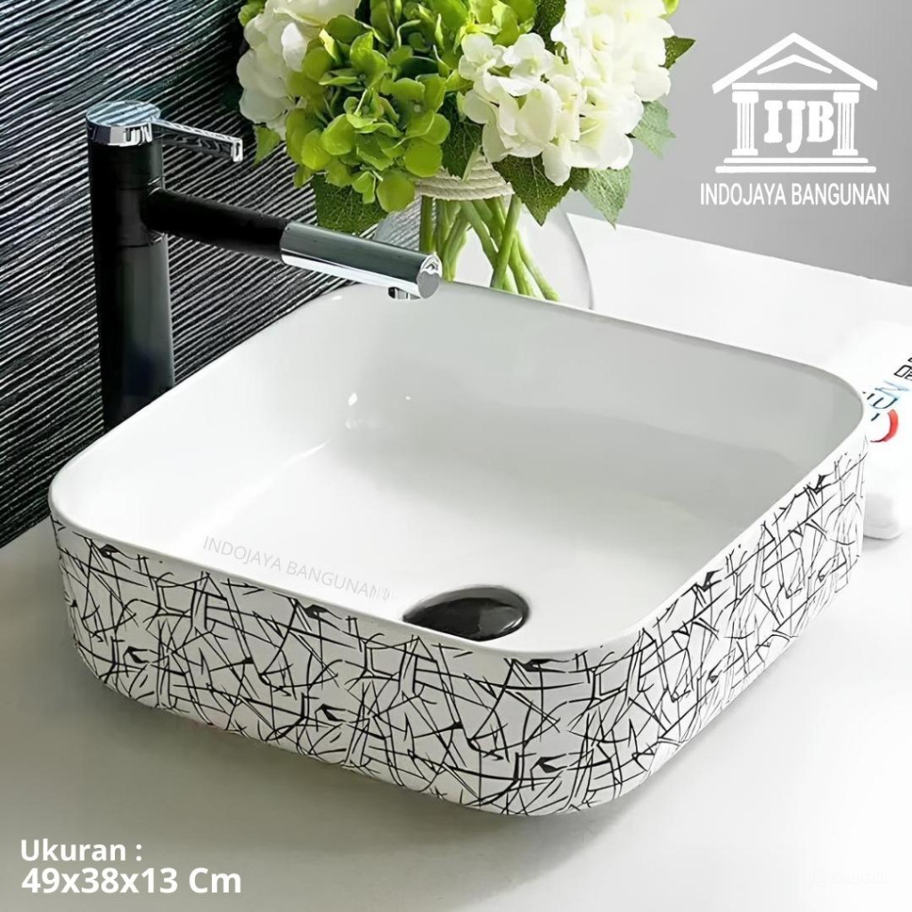 Wastafel Cantik Keramik Putih Hitam Meja atau Gantung : Putih Bulat , Oval , Kotak