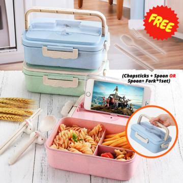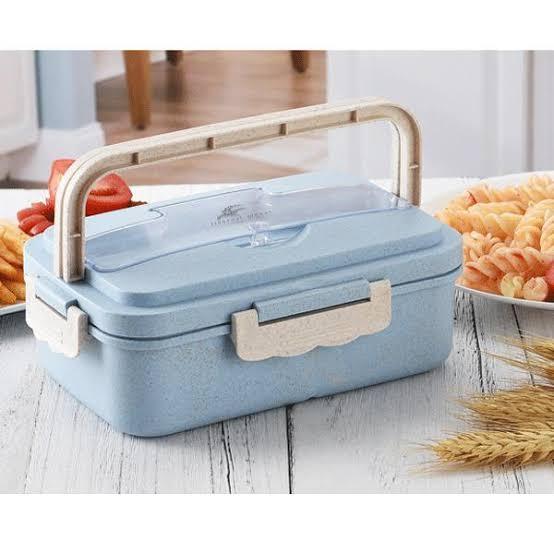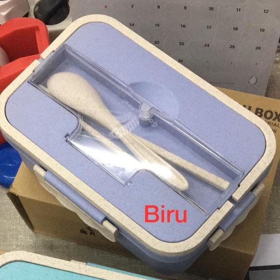 Kotak Makan Jerami Lunch Box Gandum Wheat Tempat Bento Alat Sendok Set - Tanpa Handle, Krem