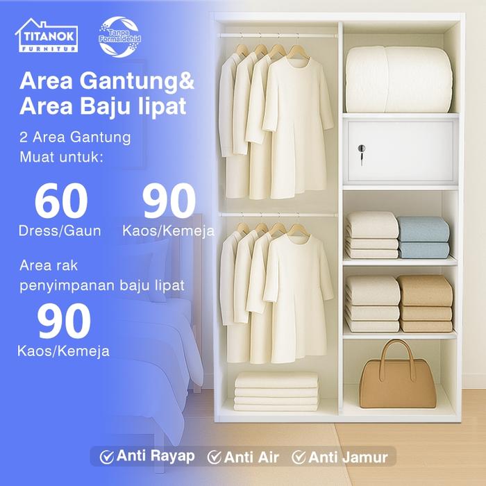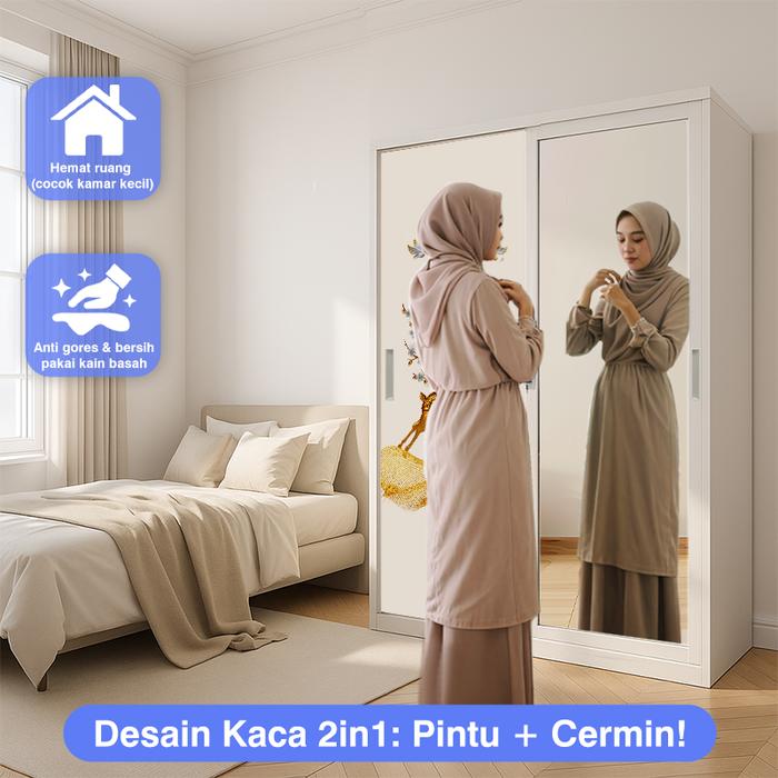 Lemari Titanok- Lemari Pakaian Besi 2 Pintu Slidding 120Cm Wardrobe Steel Cermin MinimalisG - G01, 1