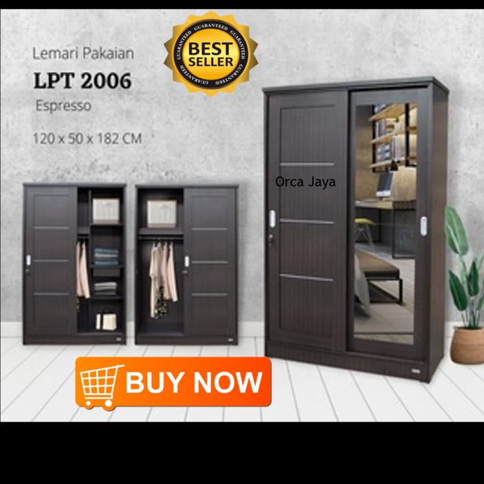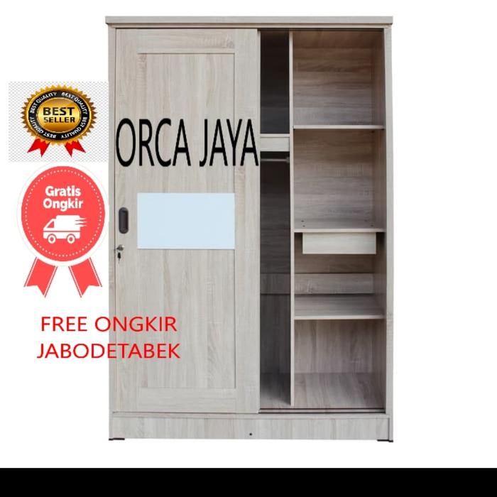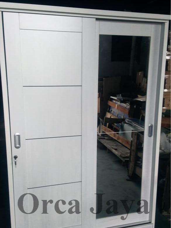 Lemari Pakaian 2 Pintu Sliding Cermin Panjang - Oak Putih