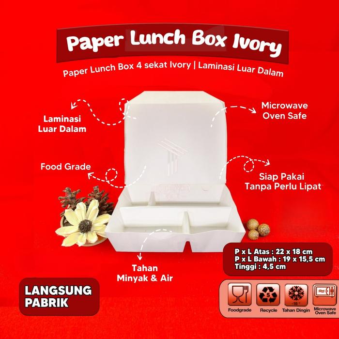 Paper Lunch Box Sekat 4 Food Grade Kemasan Makanan Kotak Putih