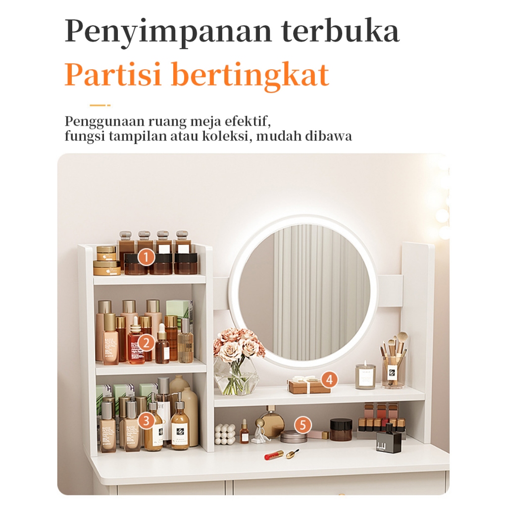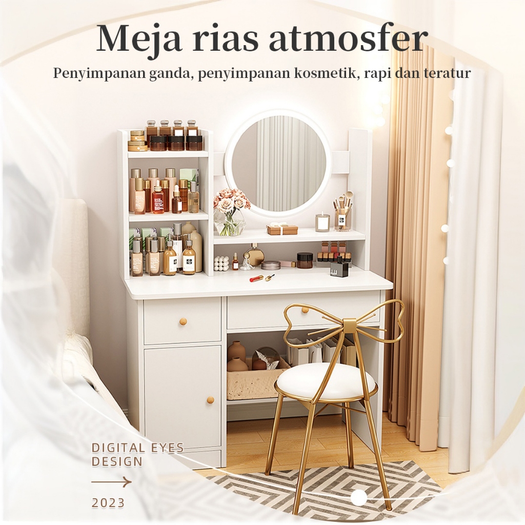Meja Rias Kursi Pita/ Meja Rias Lampu LED / Meja Rias Dengan Cermin / Meja Rias Minimalis/ Meja Penyimpanan / Meja Kosmetik / Meja Kamar Tidur