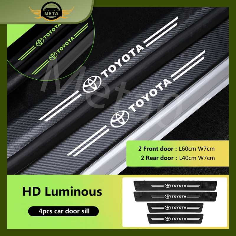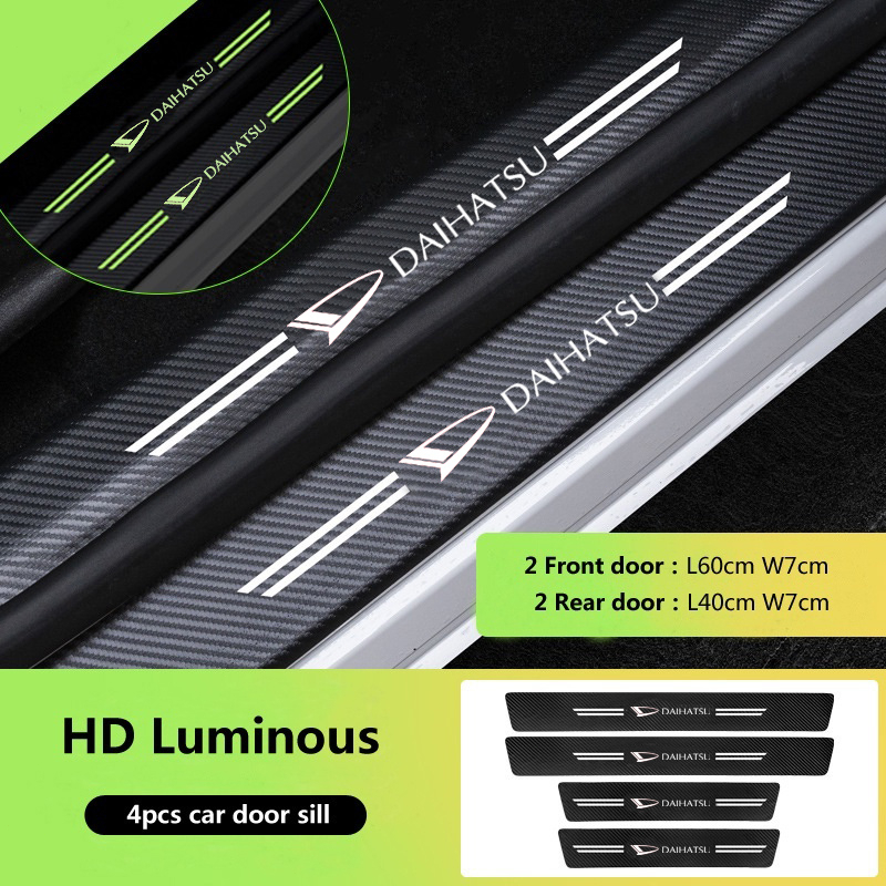 4Pcs Bercahaya Strip Pelindung Bahan Kulit Carbon 3D Door Sill Plate Guard Pintu Mobil Stiker