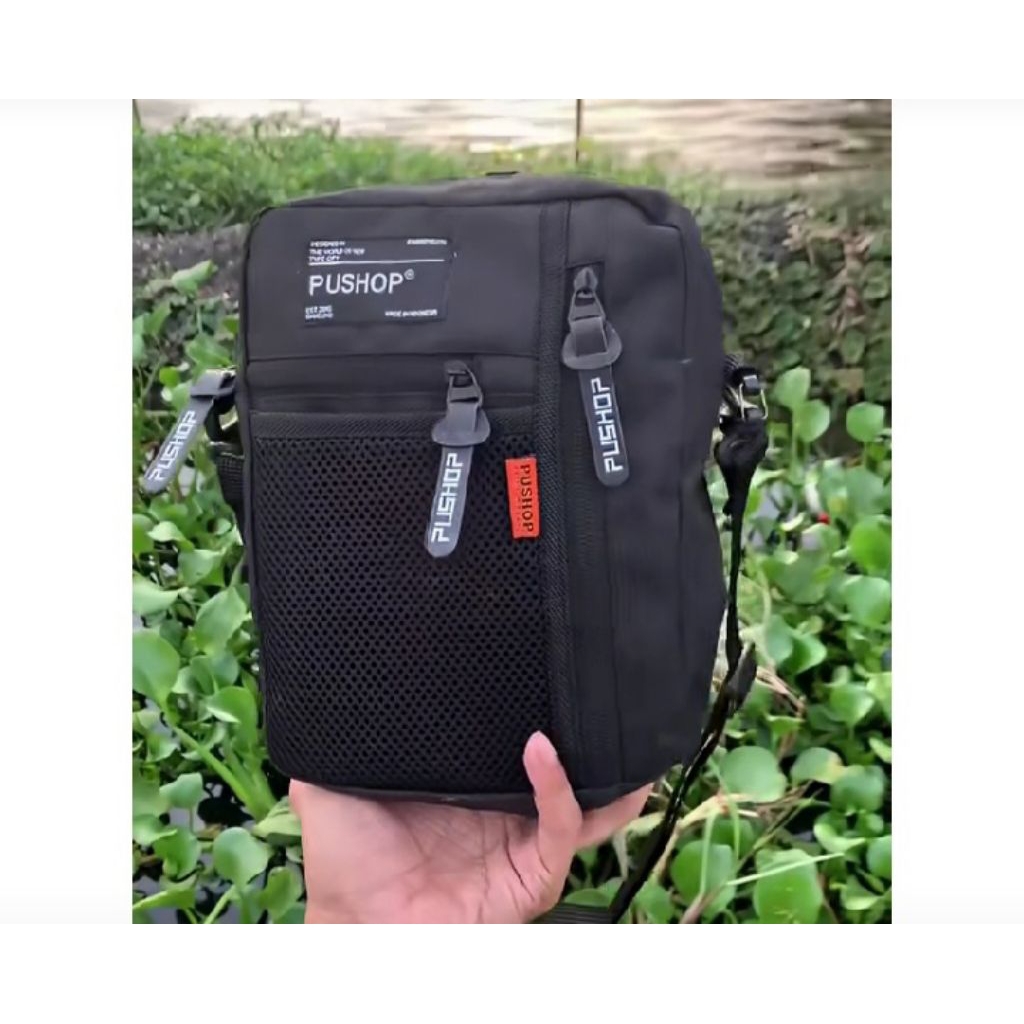 TAS Selempang Full Black Kekinian Pria Wanita