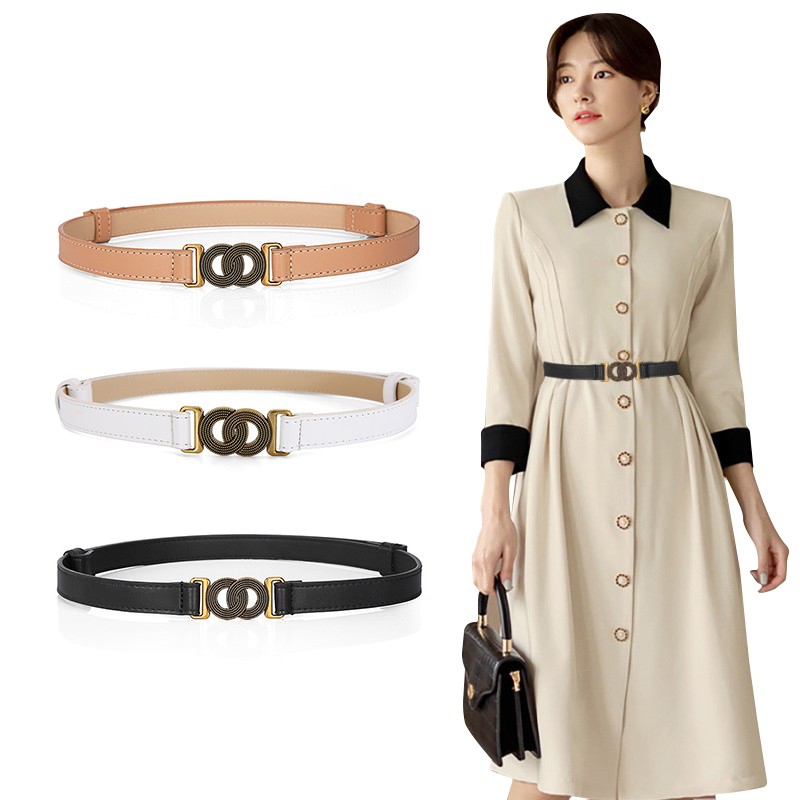 Ikat Pinggang Wanita Kulit Imitasi Slim Casual Warna Warni Gesper Ganda