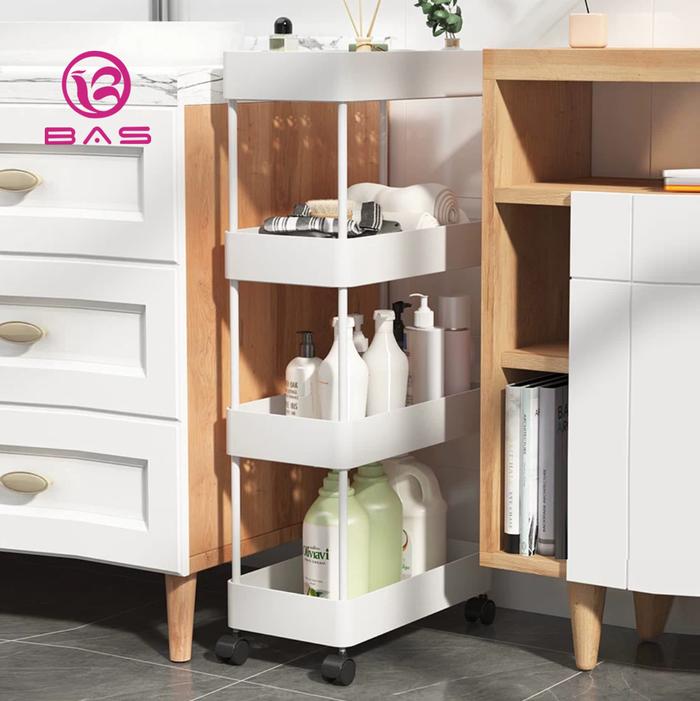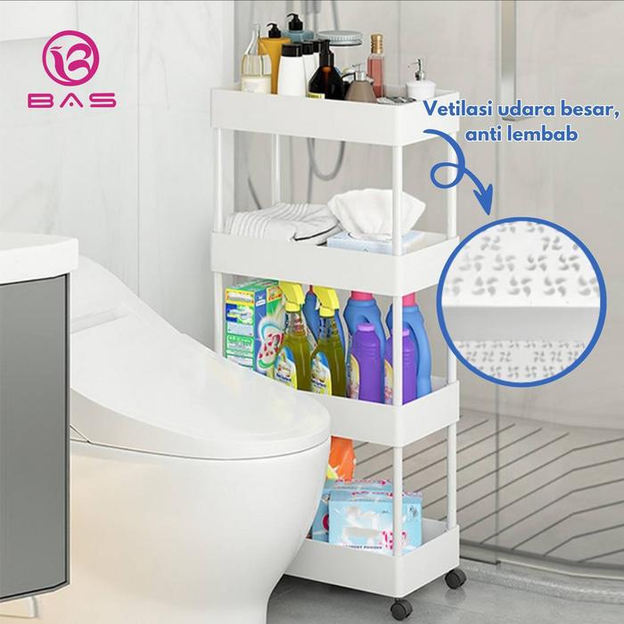 Bas Square Rak Troli Rak Dapur Rak Serbaguna 4 Tingkat Dengan Roda - Putih