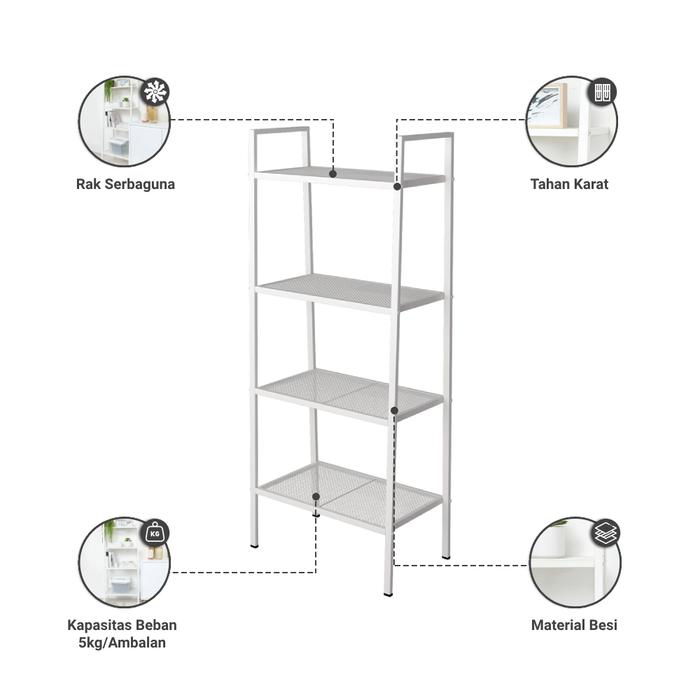 Informa Libie Rak Besi 4 Tingkat - Putih Storage Rack Metal Tempat Penyimpanan Serbaguna Rak Barang Organizer Gudang - A