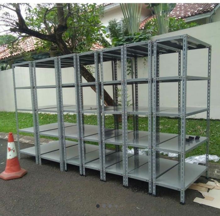 Rak Besi Siku Unggulan Ukuran P100Cmxl40Cmxt200Cm Bahan Plat Tebal 0.8Mm Tiang 1.8Mm Kapasitas 80Kg Free Ongkir Dki Jaka