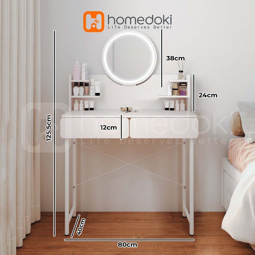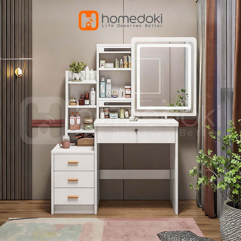 Homedoki Meja Rias Minimalis/Meja Rias Led/Meja Rias Lampu/Meja Rias Aesthetic/Meja Rias Sliding/Meja Make up/Set Meja Kursi