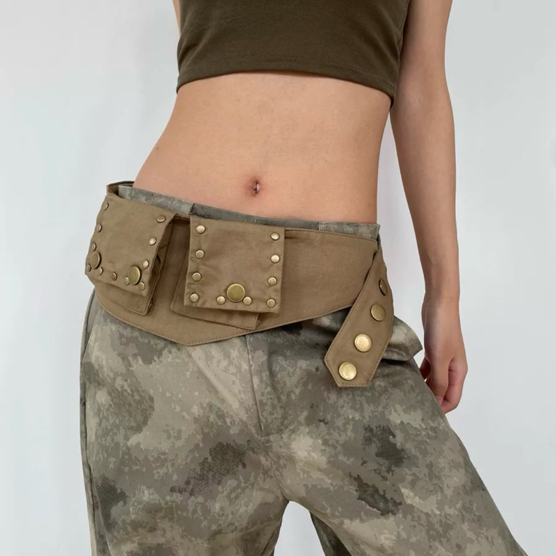 HEYSOUL Tas Pinggang Model Militer atau Steampunk Etnik Retro Wanita Coklat Koboi Vintage Cewek