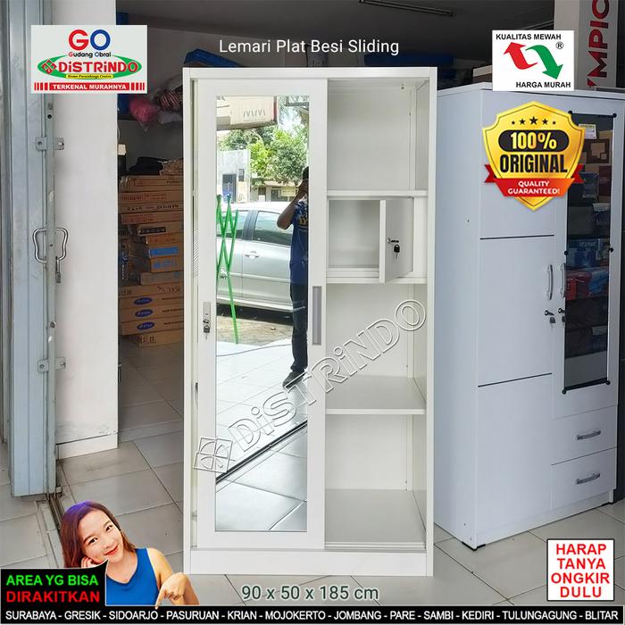 Distrindo - Lemari Pakaian Besi Pintu Sliding Cermin Panjang + Brankas