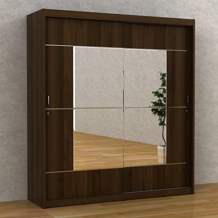 Lemari Pakaian Sliding Door 2 Pintu Jumbo 2 Meter Kaca Cermin Brown