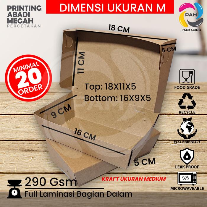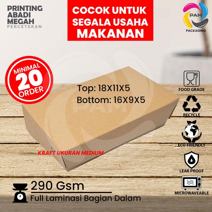 Paper Lunch Box Takeaway Kemasan Kotak Makanan Bahan Kraft Medium | 500 Pcs - Lunch Box M 290