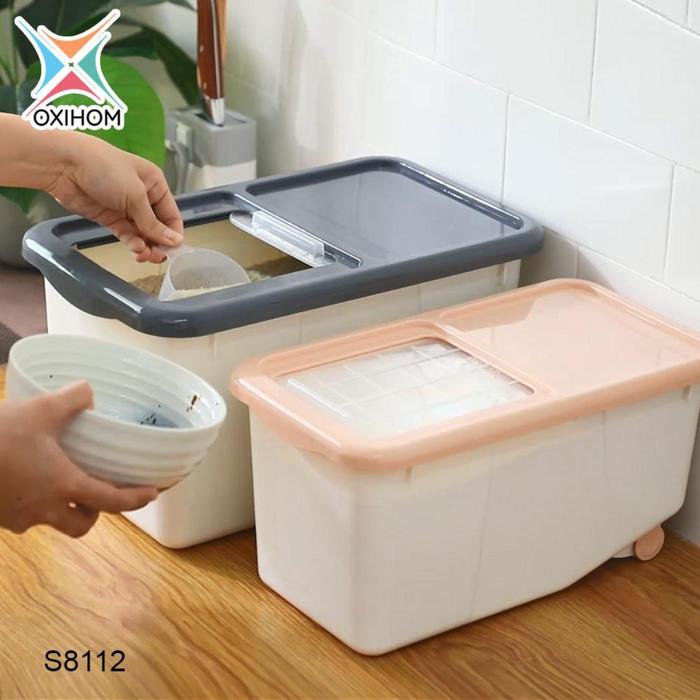 Oxihom Tempat Beras Kacang Tempat Penyimpanan Makanan Rice Storage Plastik - S8111 Pink
