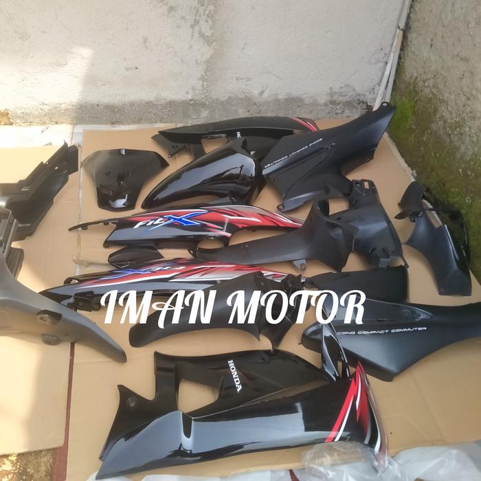 Cover Motor Supra Fit X Full Hitam Plus Striping Bodi Halus Kasar