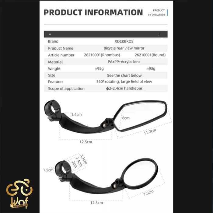 Rockbros Fk-273 Diamond Kaca Spion Sepeda Bicycle Bike Rearview Mirror - Diamond Left