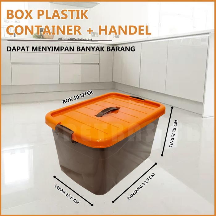 Box Container + Handel 10 Liter - Pegangan / Box Plastik Serbaguna Penyimpanan - 10 Liter