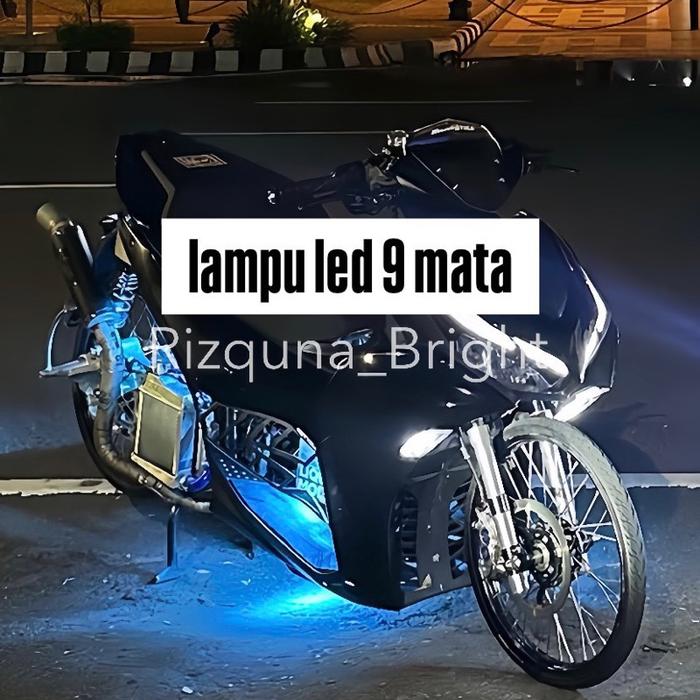 Paket Lampu Kolong Motor 9 Mata + Modul Relay Blitz Kedip Pesawat, Saklar On/Off, Kabel Awg 2X14 Untuk Semua Motor Unive