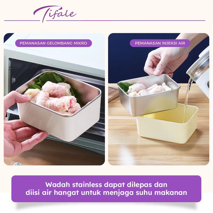1Pc Tifale Novara Food Storage Stainless Steel Sus304L | Kotak Makan Premium Anti Tumpah, Kompak & Elegan - 1Pc White