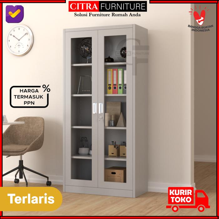 Lemari Arsip Besi 2 Pintu Swing Kaca|Kantor Dokumen File |Pintu Buka - White Series, Tanpa Rakit