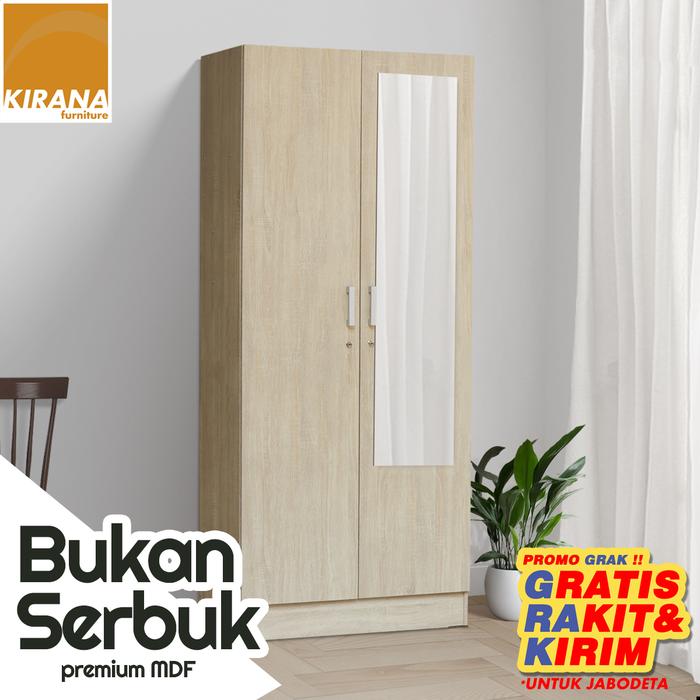 Kirana Lemari Pakaian Wanaka 2 Pintu Cermin - Sc - Full Kayu