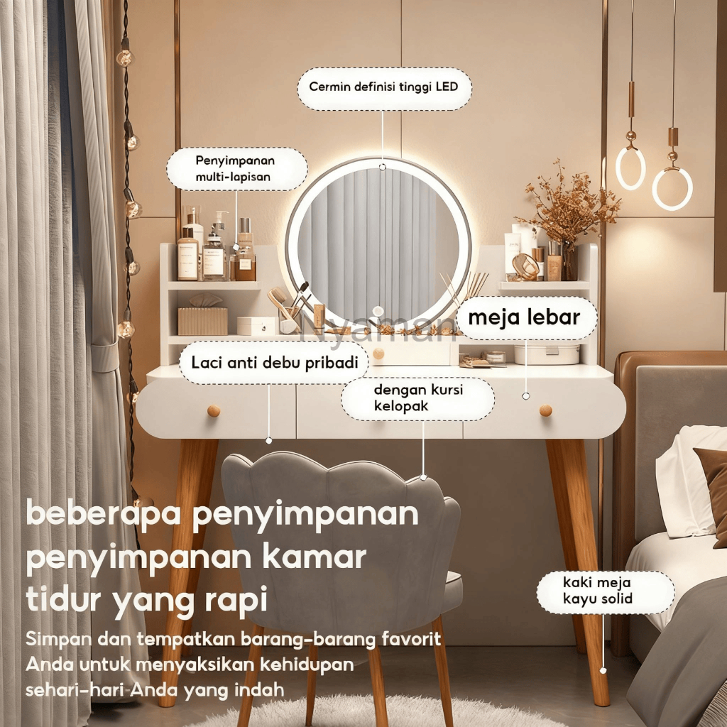 NYAMAN Meja Rias LED Rias Meja Rias Minimalis Meja Rias Minimalis Estetik + Kursi Meja Kamar Tidur