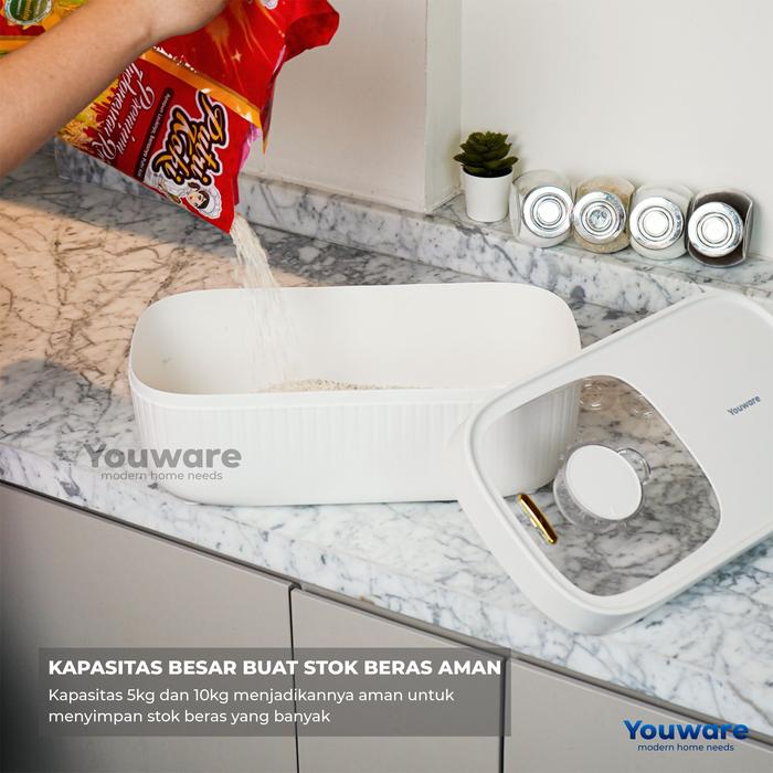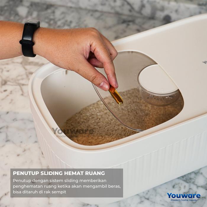 Youware - Skeeva Rice Container/ Tempat Beras Aesthetic 5 Kg 10 Kg Dengan Wadah Gelas Penakar Dan Pengatur Tanggal W