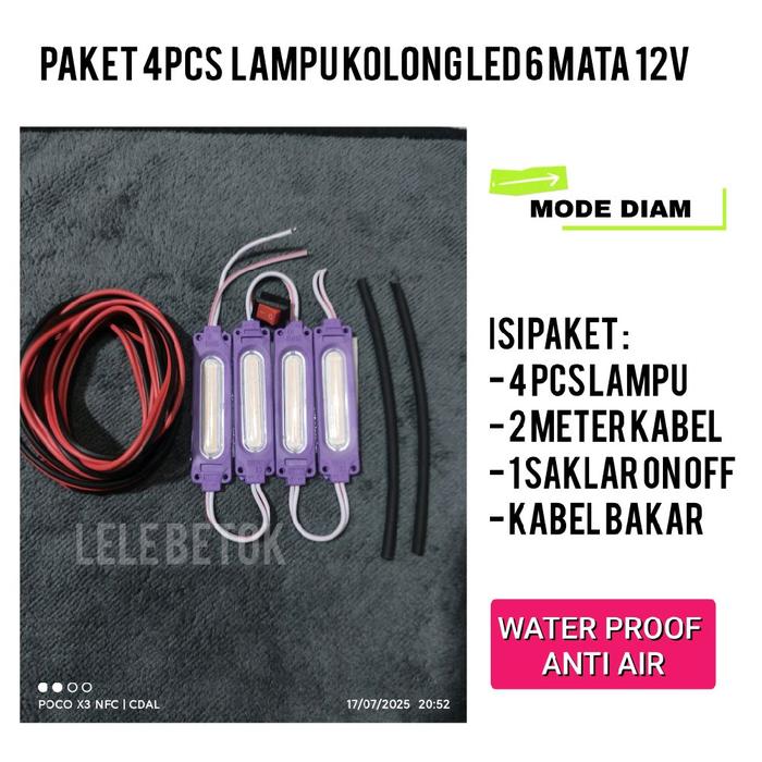 Paket Lampu Kolong Motor Led 6 Mata Water Proof Universal Semua Kendaraan 12V - Set Lengkap 2 Lampu, Kuning