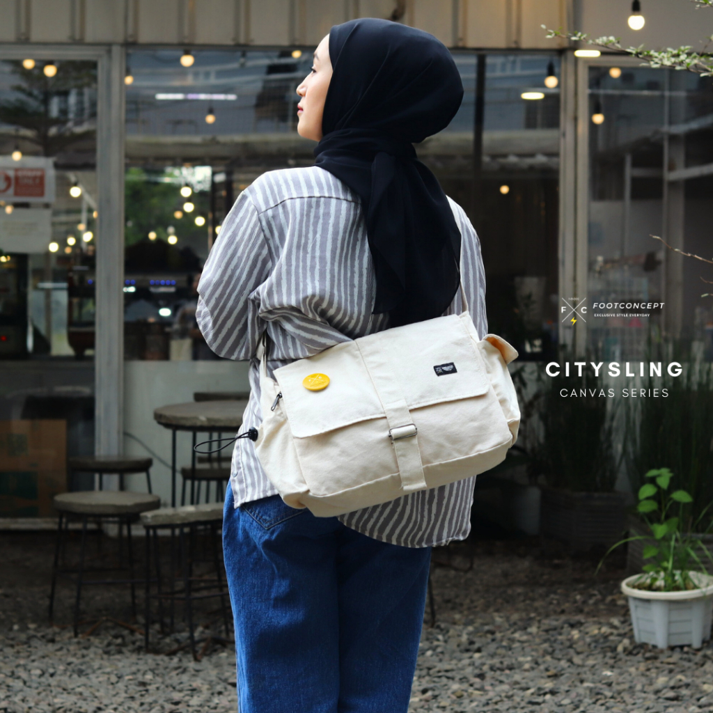FOOTCONCEPT Tas Selempang Kanvas Pria Wanita Kekinian Sling Bag Laptop Kerja Kuliah CitySling Series