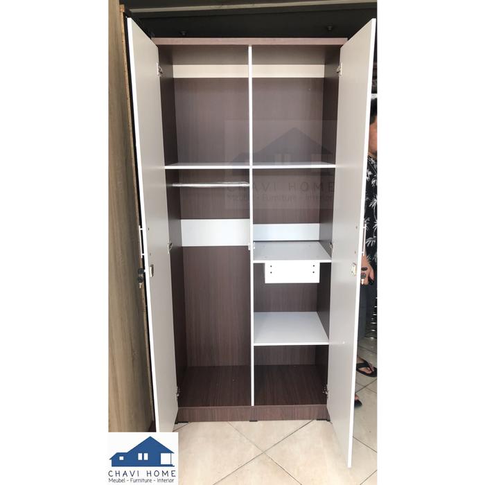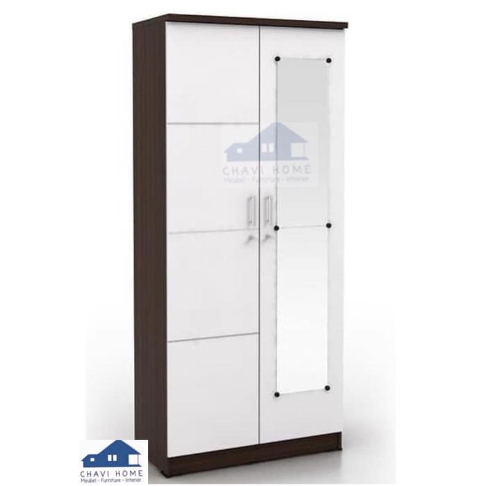 Lemari Pakaian Lemari Baju 2 Pintu Kaca Panjang Putih