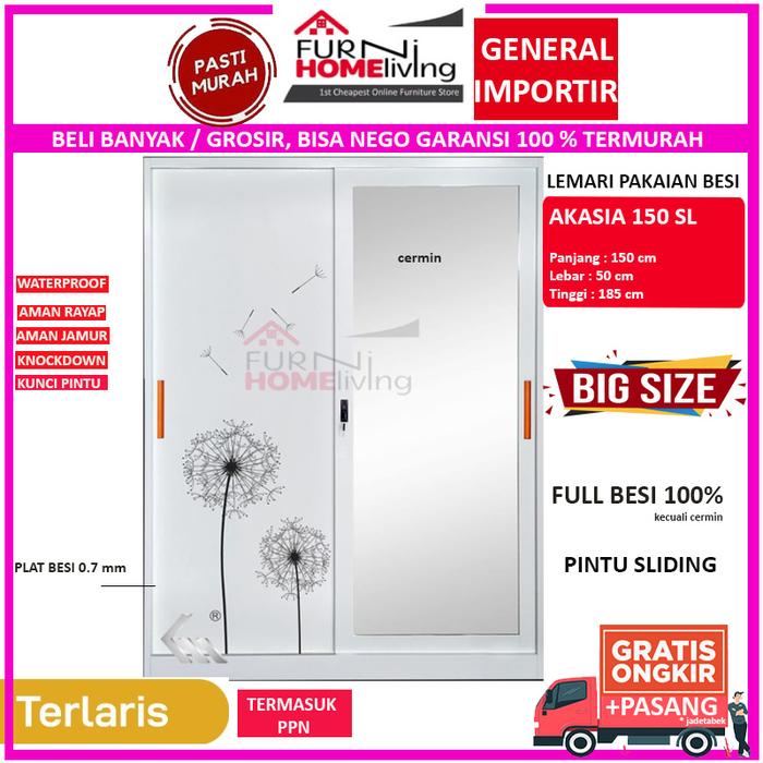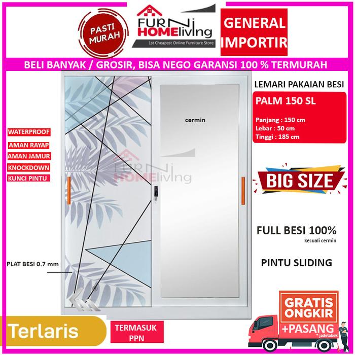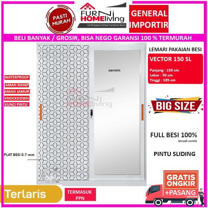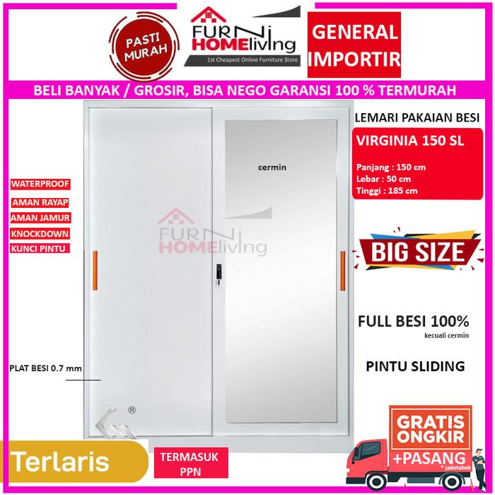 Ekstra Besar Lemari Pakaian Besi 2 Pintu Cermin Sliding Virginia 150 Sl
