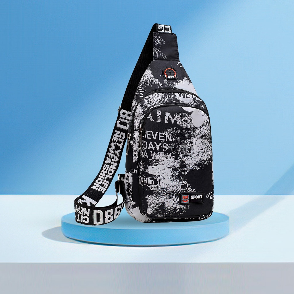 Tas Selempang Abstrak Pria Waterproof Slingbag Fashion Trendy Lubang Earphone Terbaru ZL 009